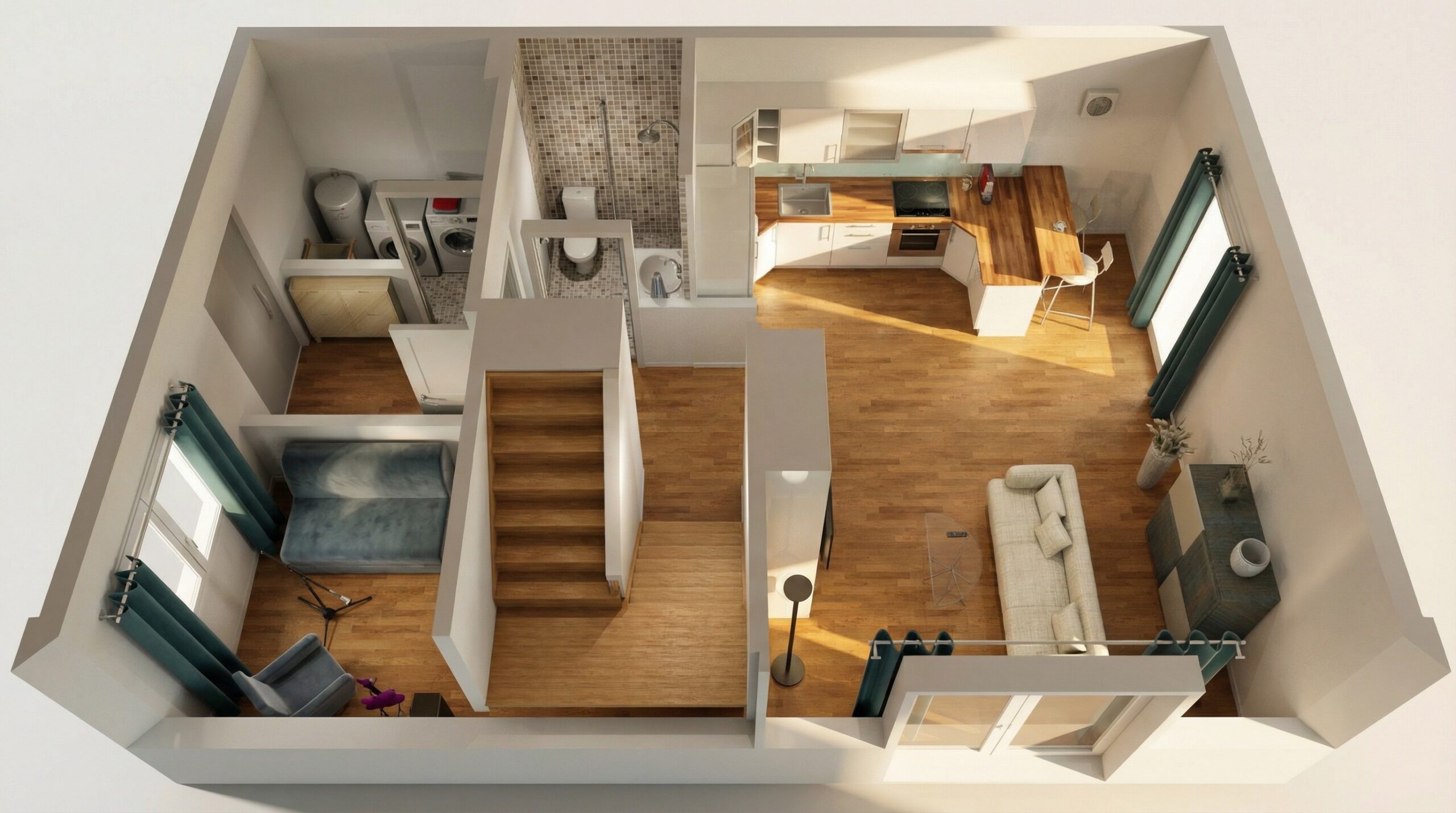Prezentowane wizualizacje / zdjęcia wnętrz mają charakter wyłącznie poglądowy i stanowią ogólny przykład aranżacji. Elementy wyposażenia i aranżacji wnętrza nie stanowią oferty w rozumieniu Kodeksu Cywilnego.