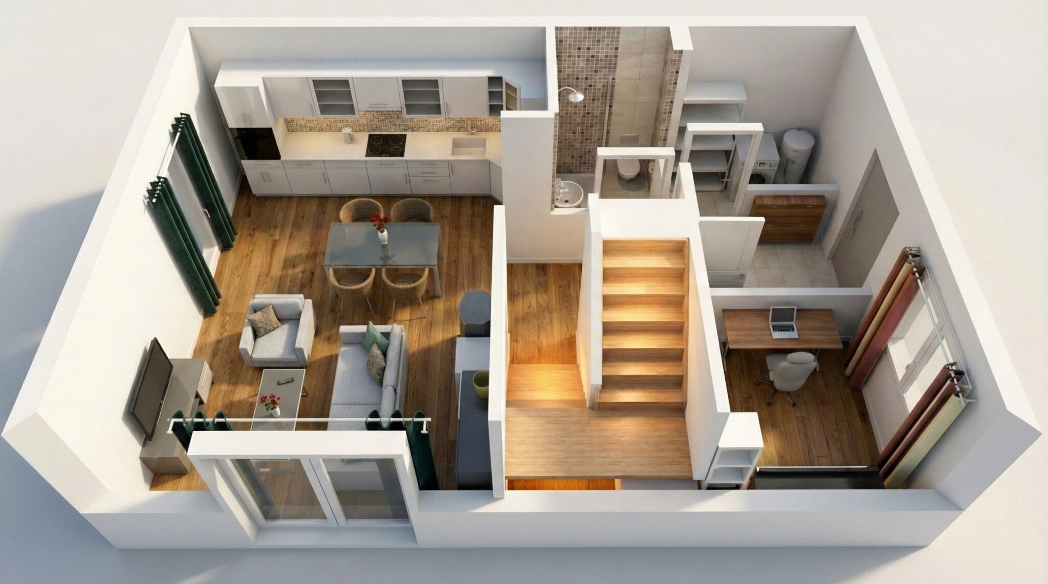 Prezentowane wizualizacje / zdjęcia wnętrz mają charakter wyłącznie poglądowy i stanowią ogólny przykład aranżacji. Elementy wyposażenia i aranżacji wnętrza nie stanowią oferty w rozumieniu Kodeksu Cywilnego.